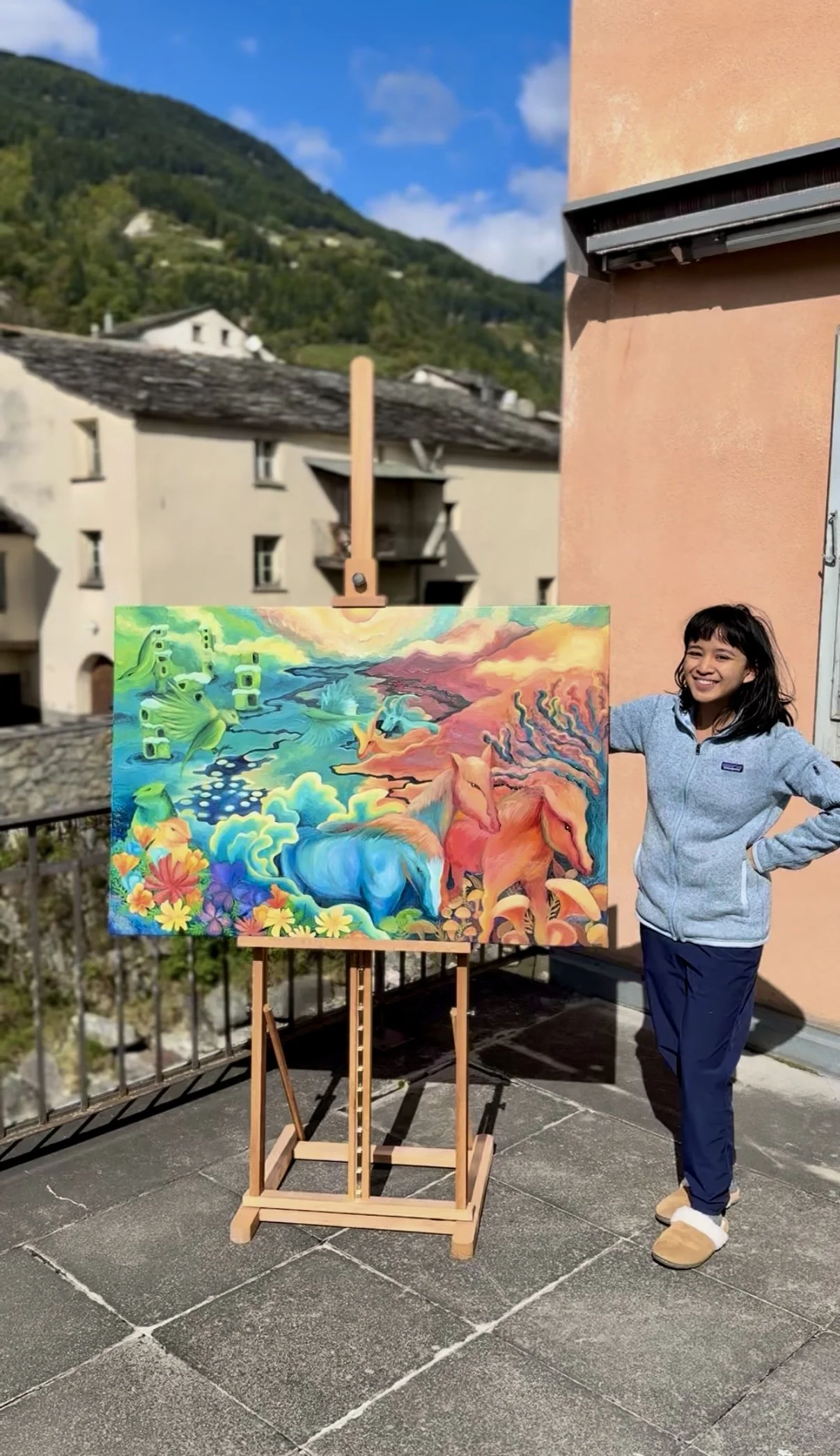 Inspired by The Entry of the Animals into Noah’s Ark by Jan Brueghel the Elder, this painting is my tribute to the quiet survivability of animals in the wild. Crafted as a part of the Alpine landscape, where the temperamental climate dramatically changes from one extreme to another, I admire the decisive ways in which they adapt and evolve with their environments.