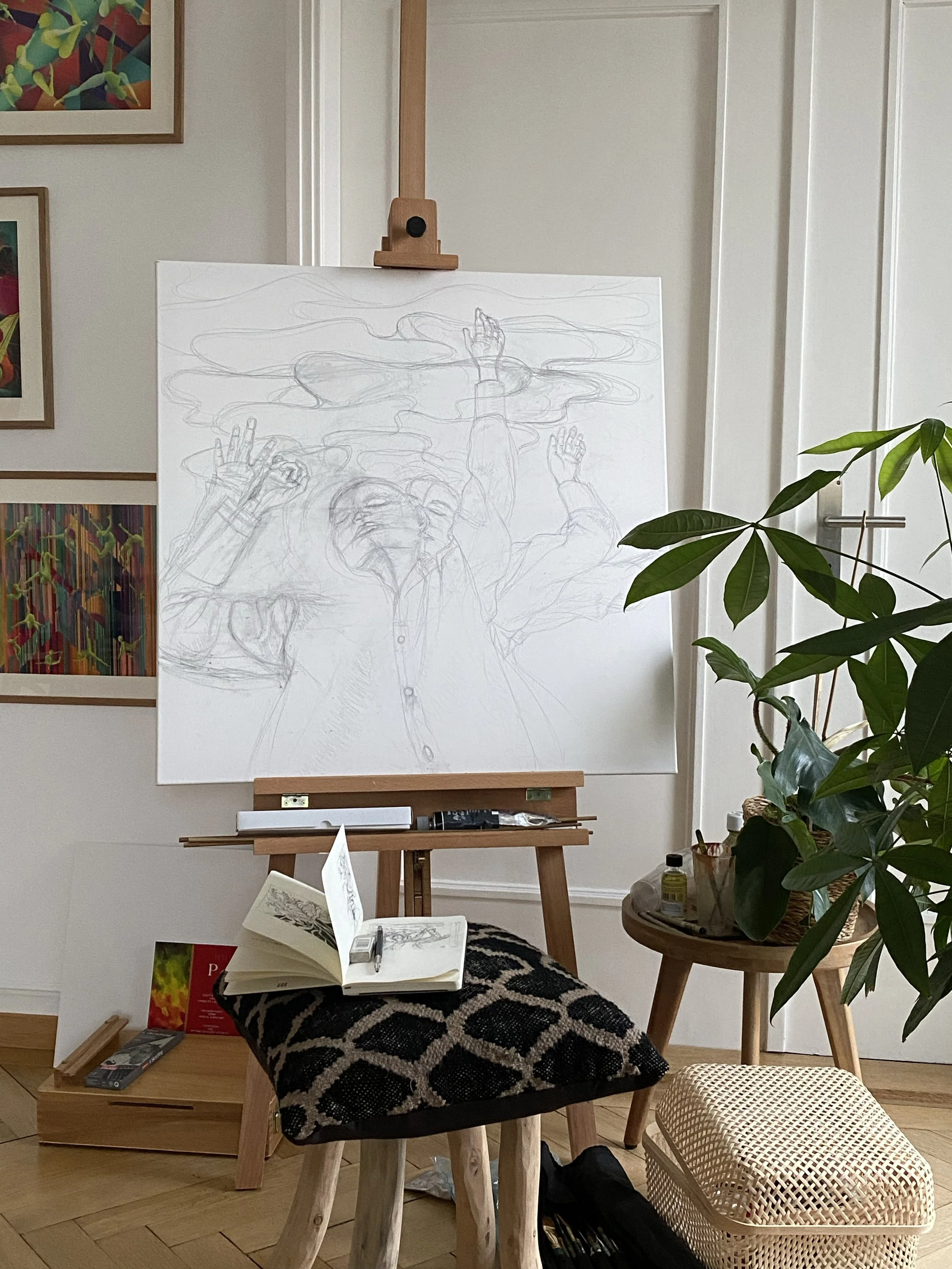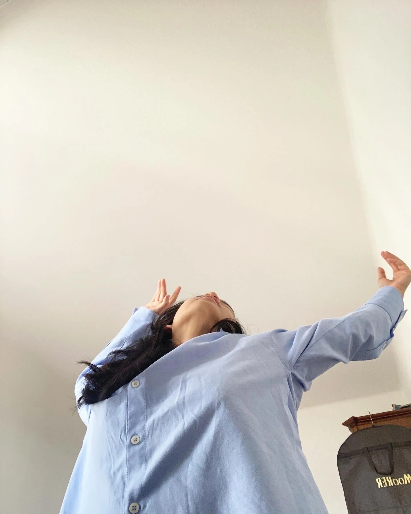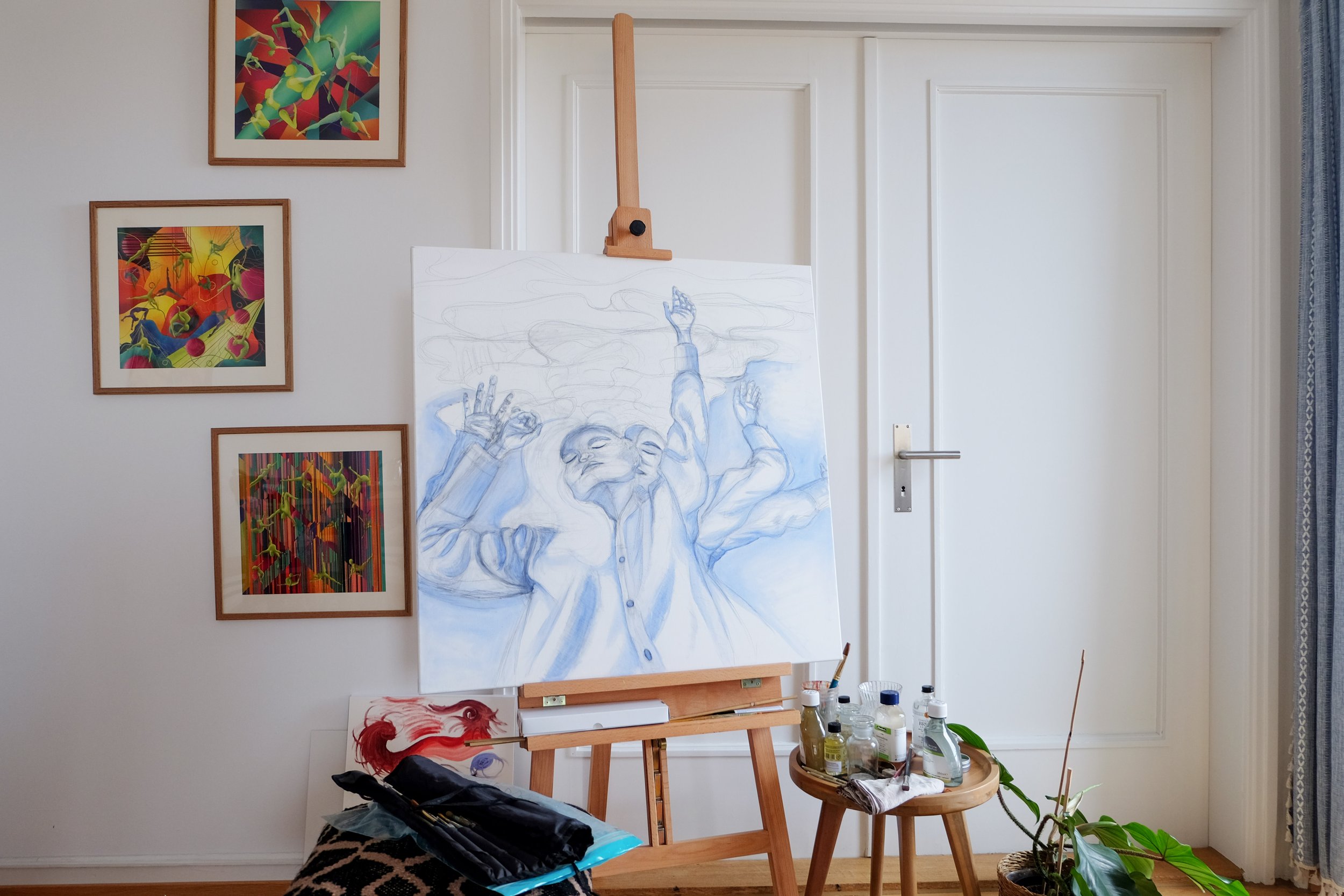 A rhythmless dance, captured on a grainy front camera, reinterpreted on a canvas. A selfie for the ages, or a manifestation of a lucid dream? A girl lives and dreams in the fluidity of her own body, melting away a portal out of her reality.